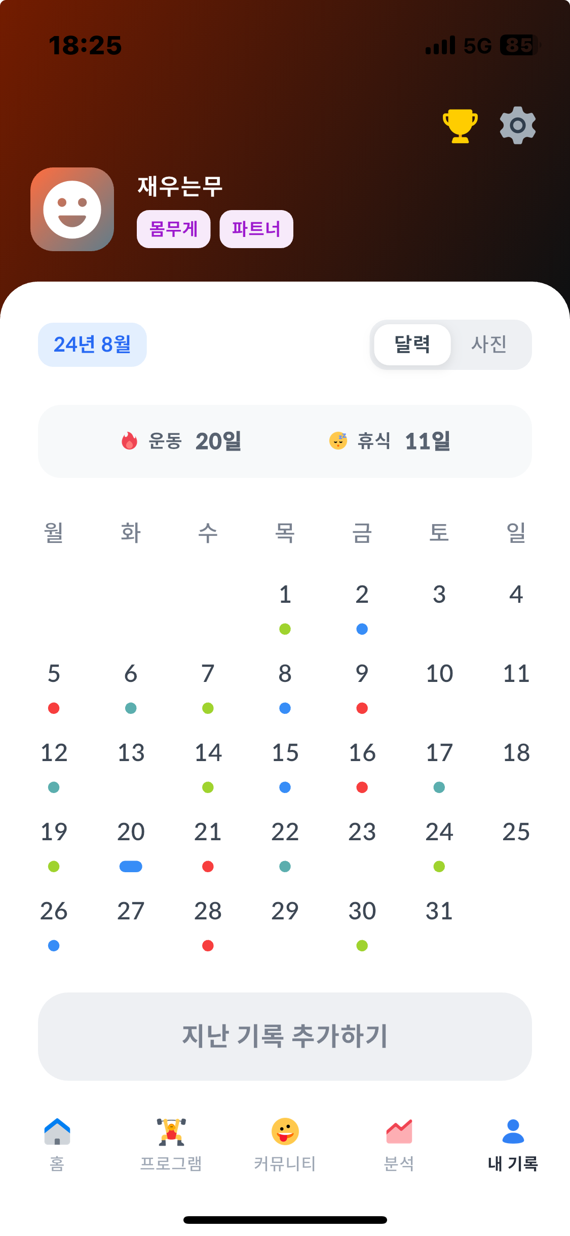 - 운동 부위와 종류, 무게를 매일 기록하기 시작했습니다.