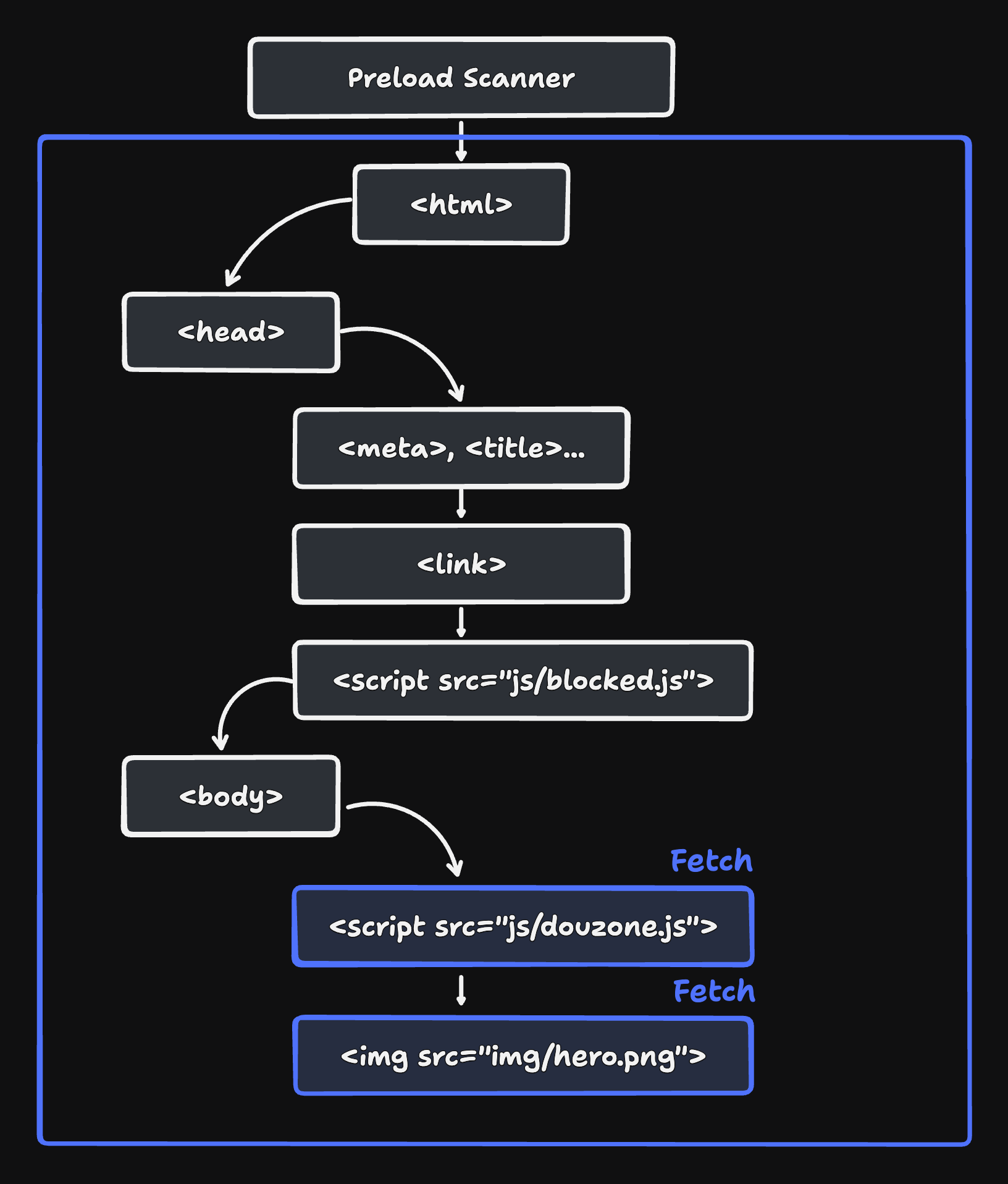 💡 요약: Preload Scanner는 HTML 파서와 함께 동작하여 중요한 리소스를 미리 스캔하고 로드하는 기능을 담당합니다.